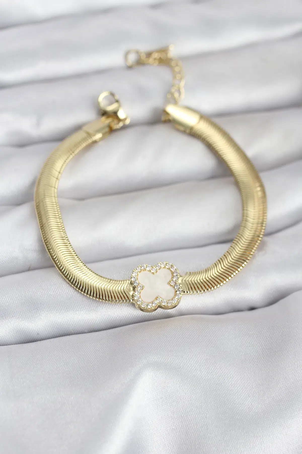 | Etiketler | Gold Renk Beyaz Yonca Model Zirkon Taşlı Yılan Zincirli Kadın Bileklik - EBJ251219W38848 |