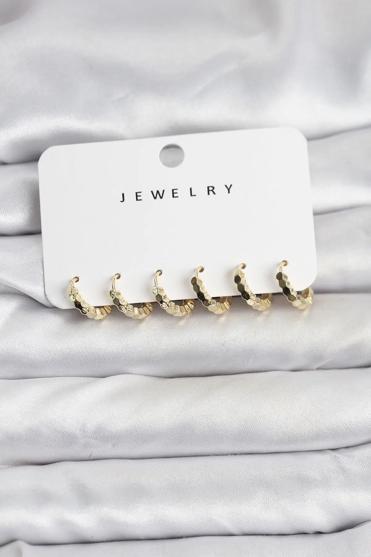 | Etiketler | Gold Renk Pirinç Minimal Petek Detaylı Kadın Küpe Seti - EBJ251219W38874 |