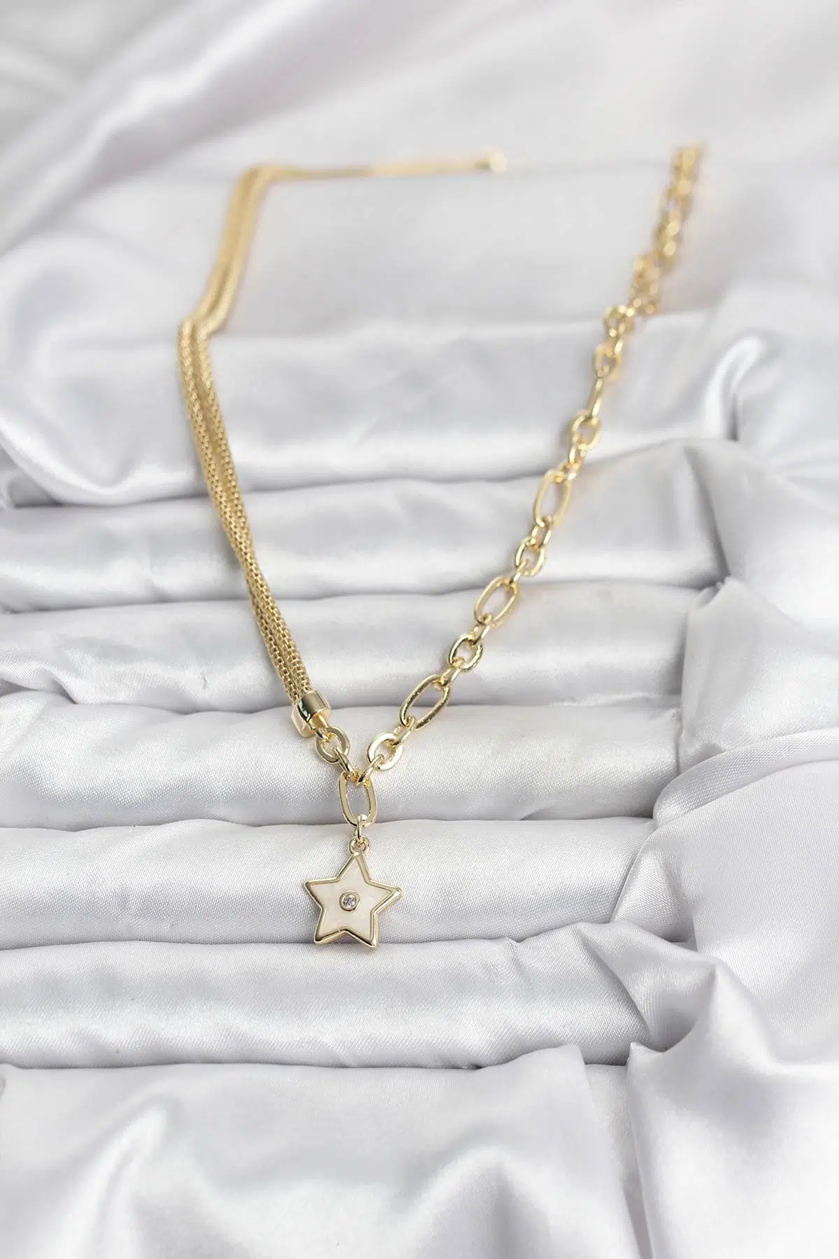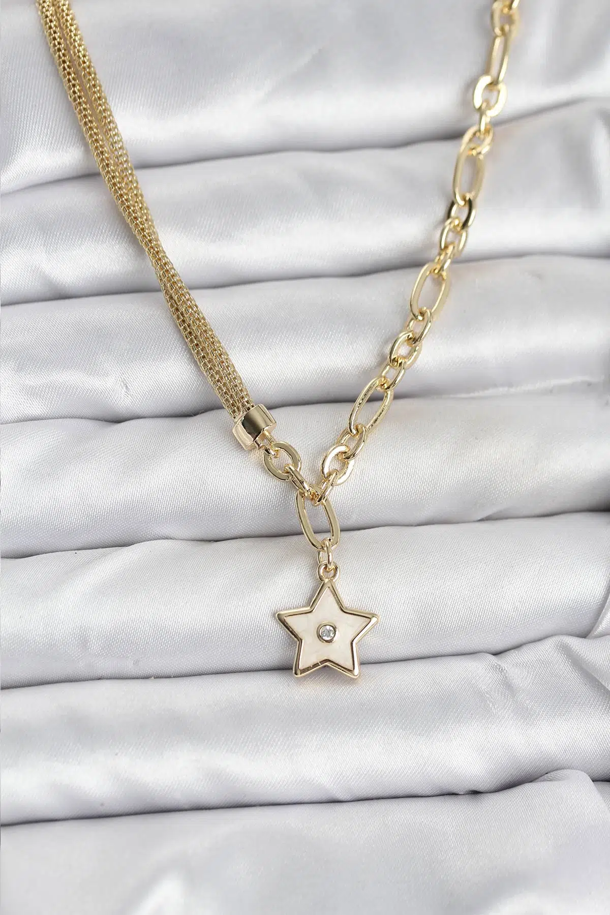 | Etiketler | Gold Renk Pirinç Yıldız Model Kadın Kolye - EBJ251115W38369 |