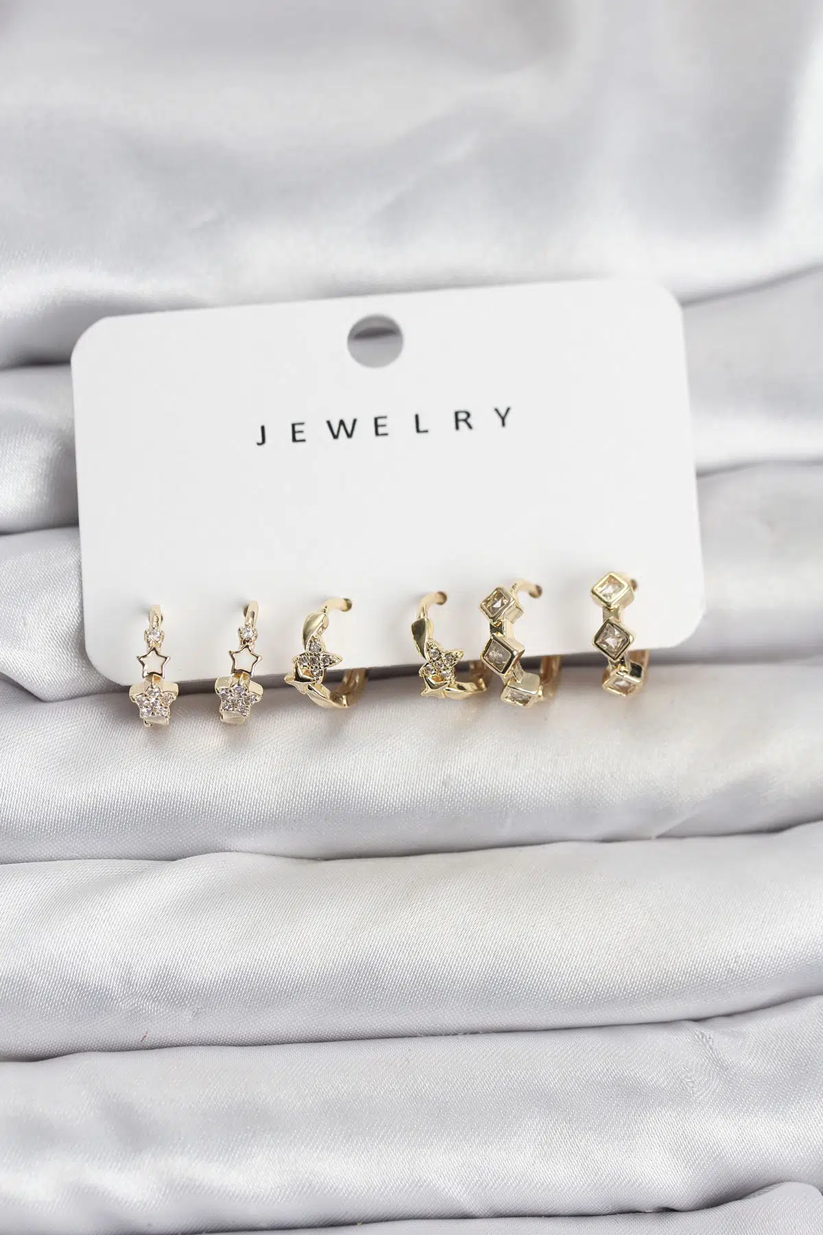 | Etiketler | Gold Renk Pirinç Yıldız Modelli Kadın Küpe Seti - EBJ251219W38884 |