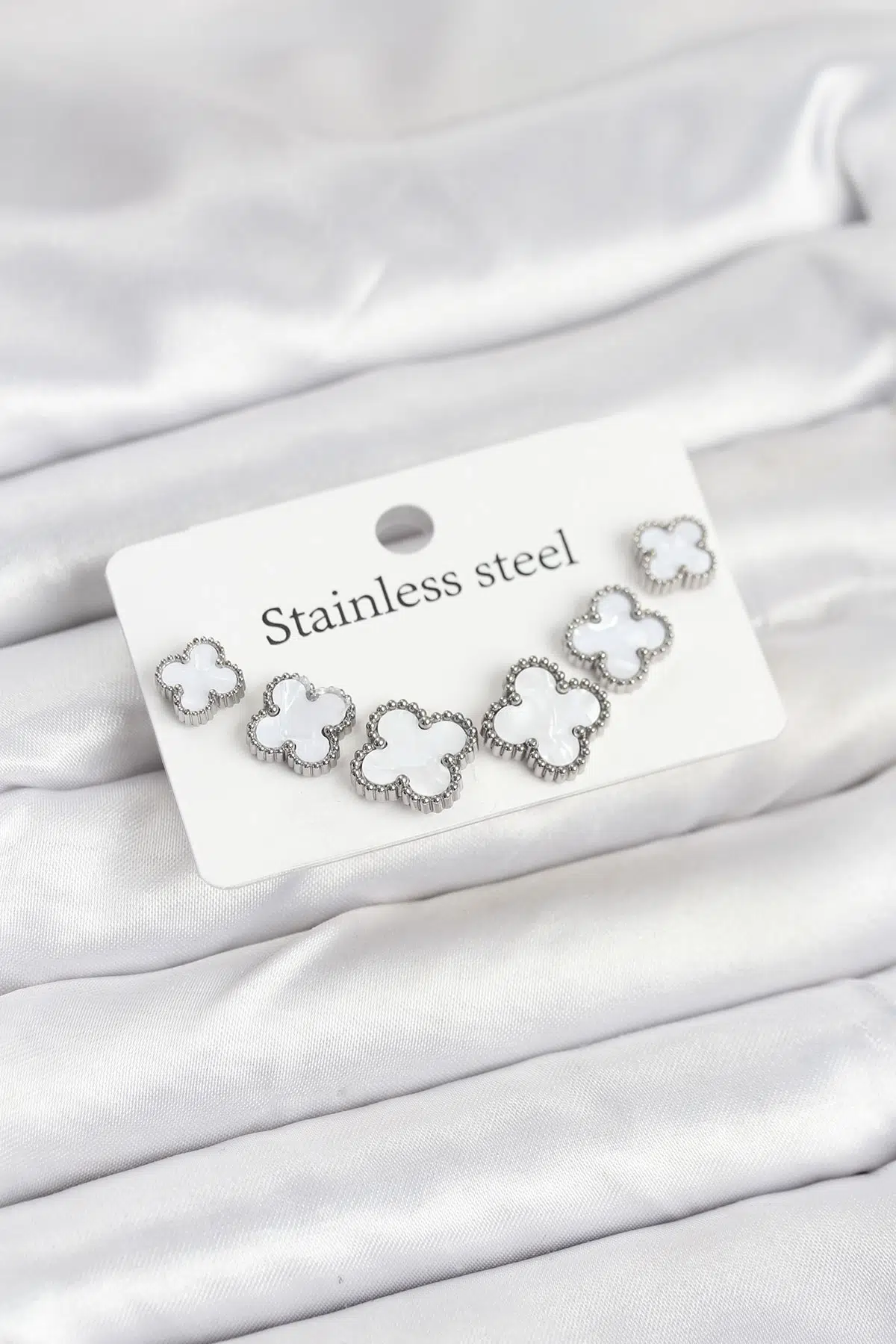 Etiketler | Gümüş Beyaz Renk 3 Boy Yonca Küpe Seti - EBJ250920W37910 |