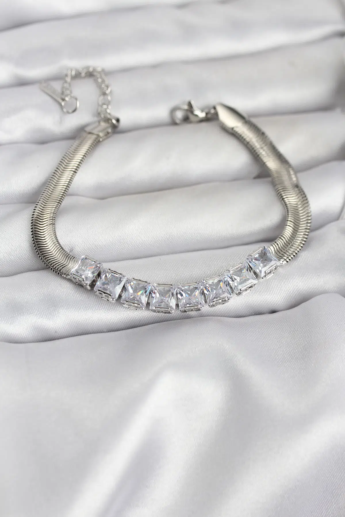 | Etiketler | Gümüş Renk Kare Zirkon Taşlı Yılan Zincirli Kadın Bileklik - EBJ251219W38844 |