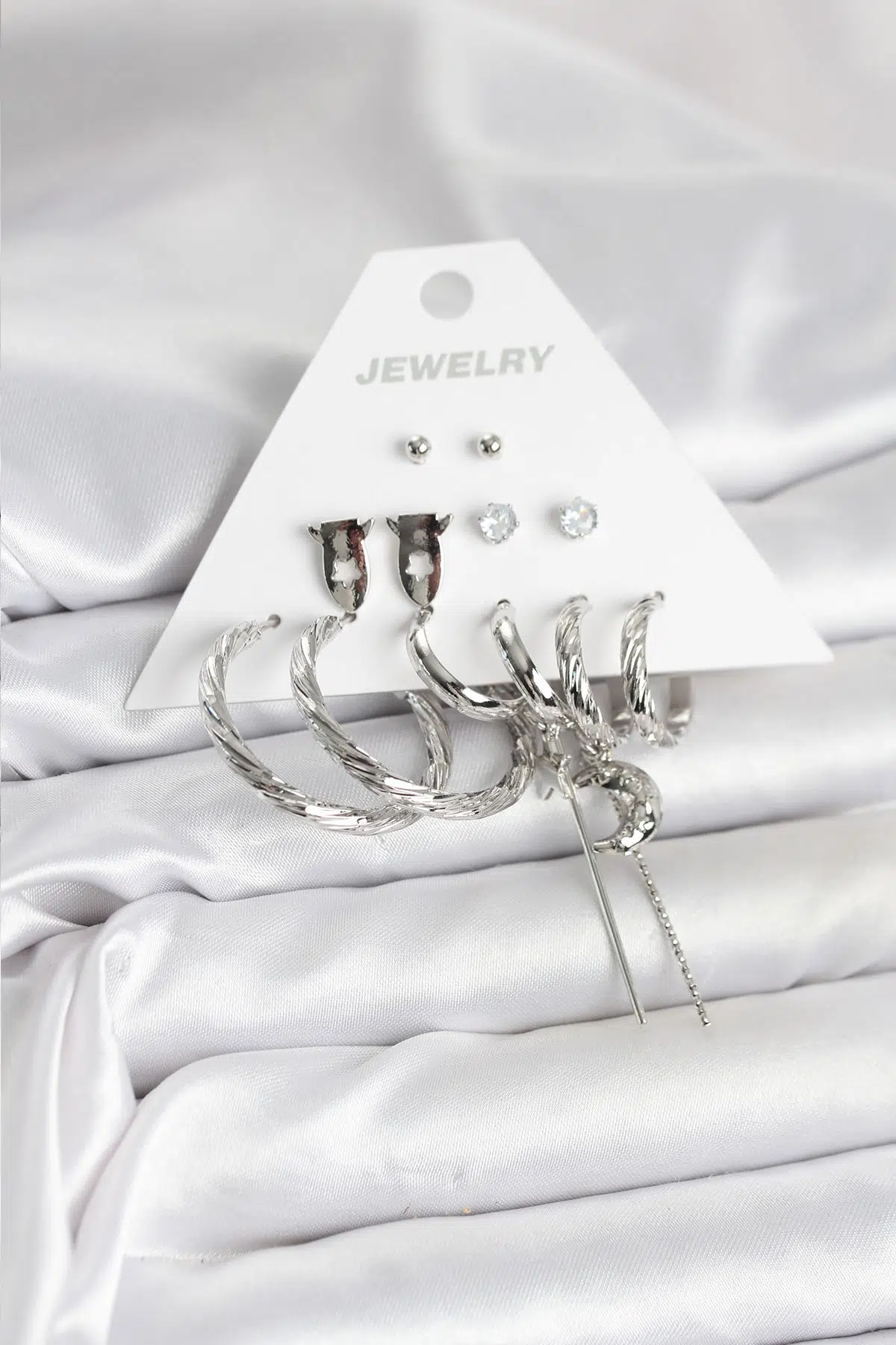| Etiketler | Gümüş Renk Pirinç 6'lı Kadın Küpe Seti - EBJ251025W38262 |