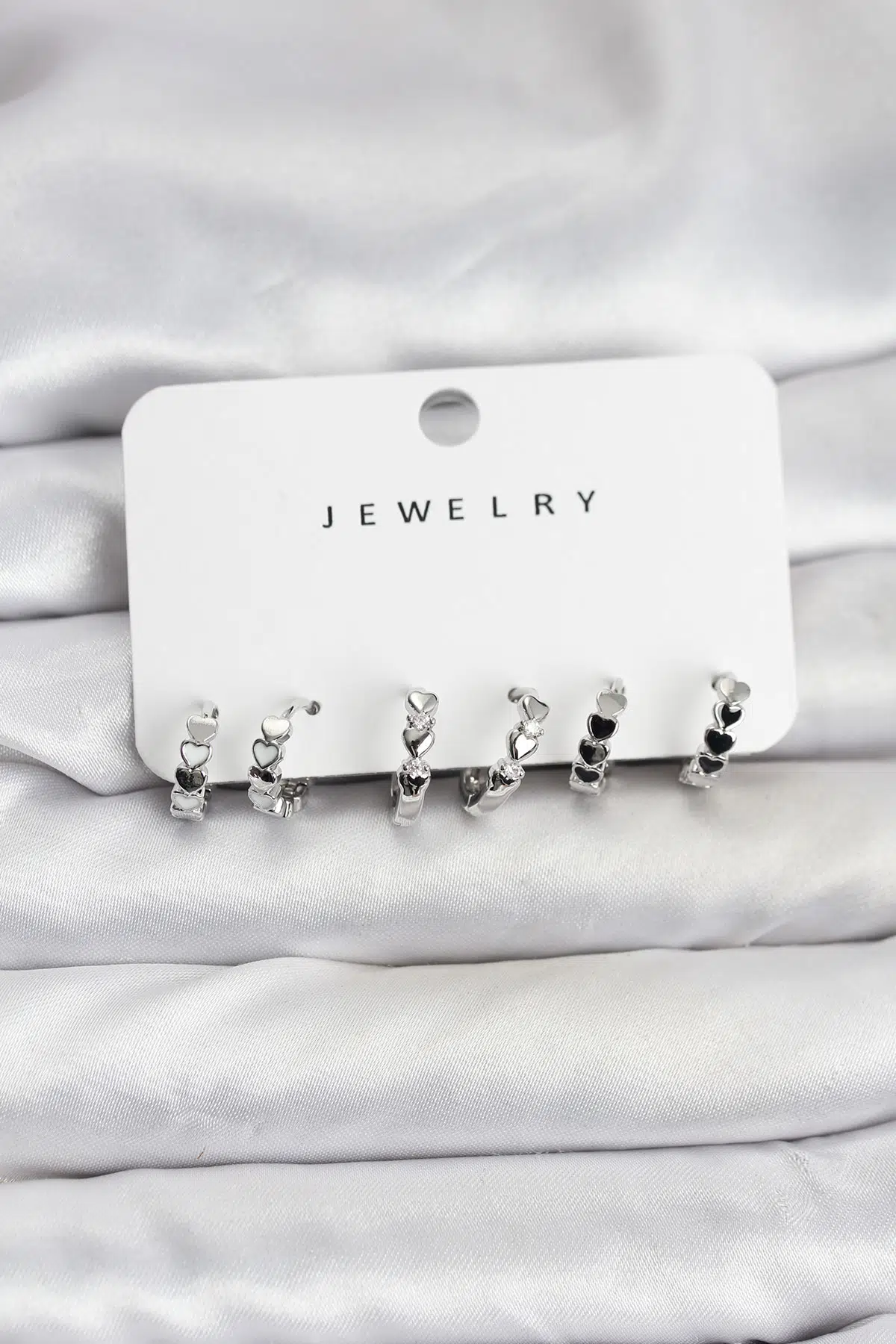 | Etiketler | Gümüş Renk Pirinç Minimal Kalp Detaylı Kadın Küpe Seti - EBJ251219W38871 |