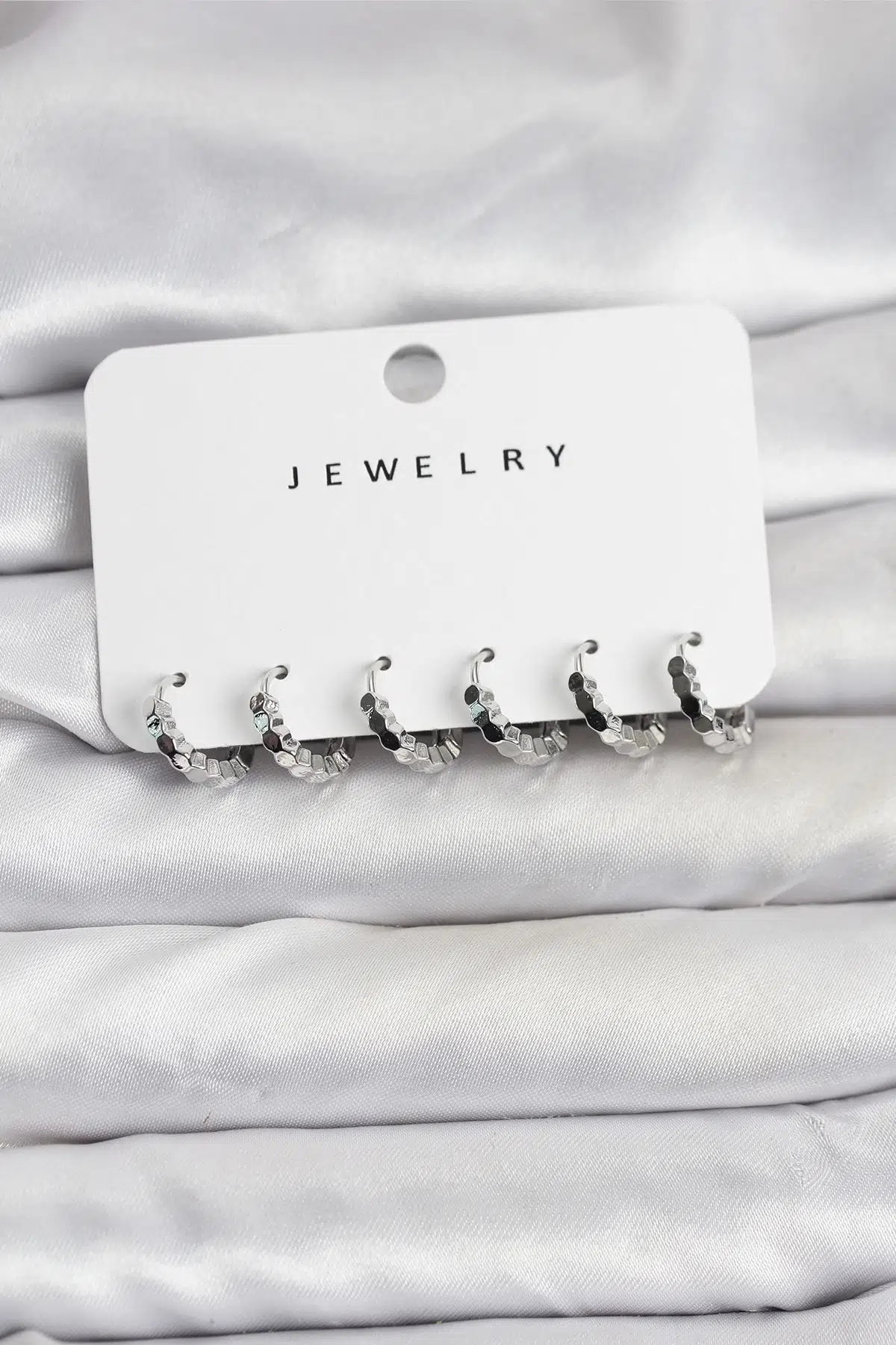 | Etiketler | Gümüş Renk Pirinç Minimal Petek Detaylı Kadın Küpe Seti - EBJ251219W38873 |