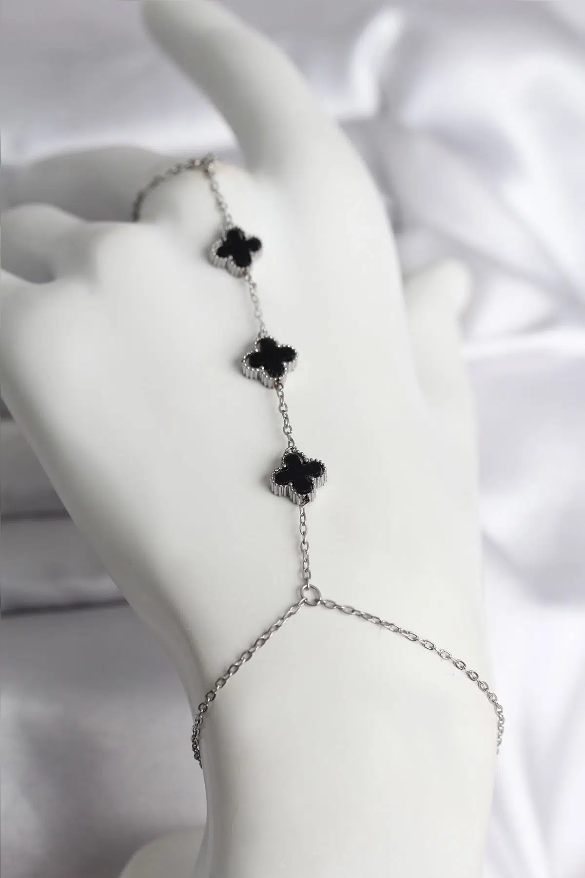 | Etiketler | Gümüş Renk Siyah Yonca Model Kadın Şahmeran - EBJ251219W38870 |