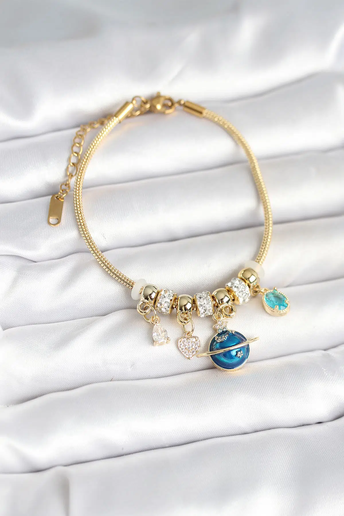 Etiketler | Pirinç Gold Renk Dünya Charmlı Kadın Bileklik - EBJ251004W38056 |
