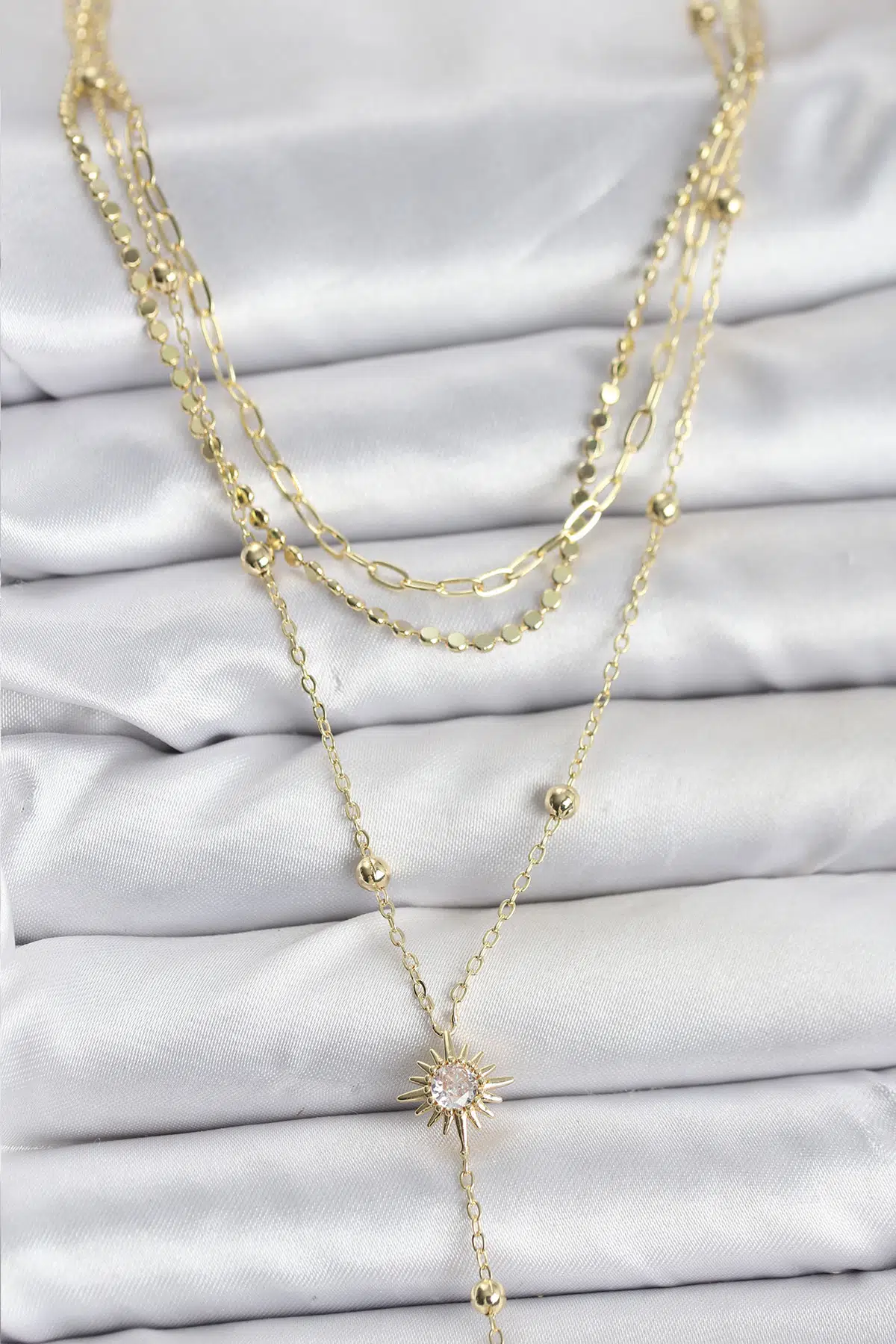 | Etiketler | Pirinç Gold Renk Güneş Model Detaylı 3'lü Kombin Y Kadın Kolye - EBJ251115W38425 |