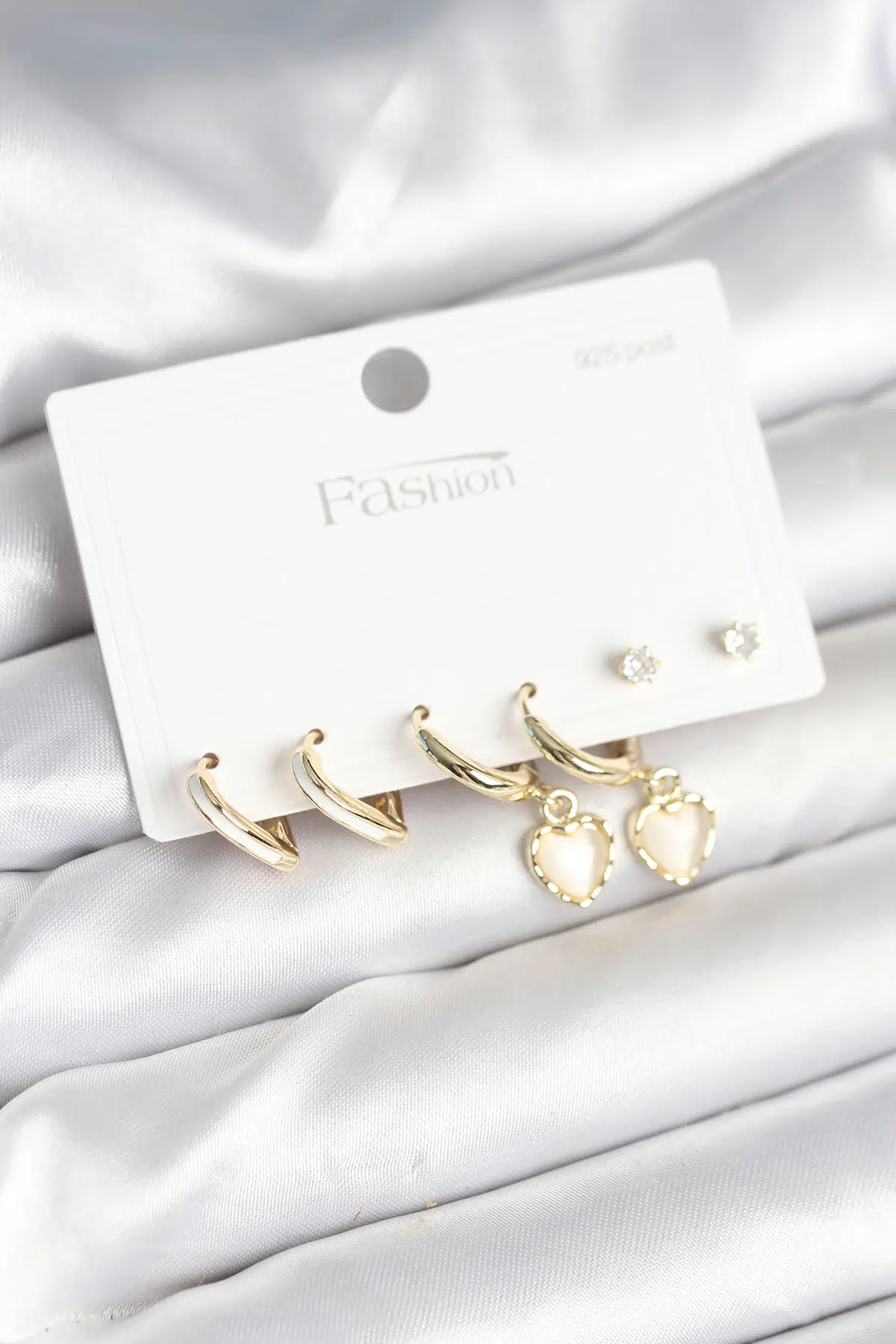 Etiketler | Pirinç Gold Renk Kalp Detaylı 925 Ayar Gümüş Çivili Kadın Küpe Seti - EBJ251010W38084 |