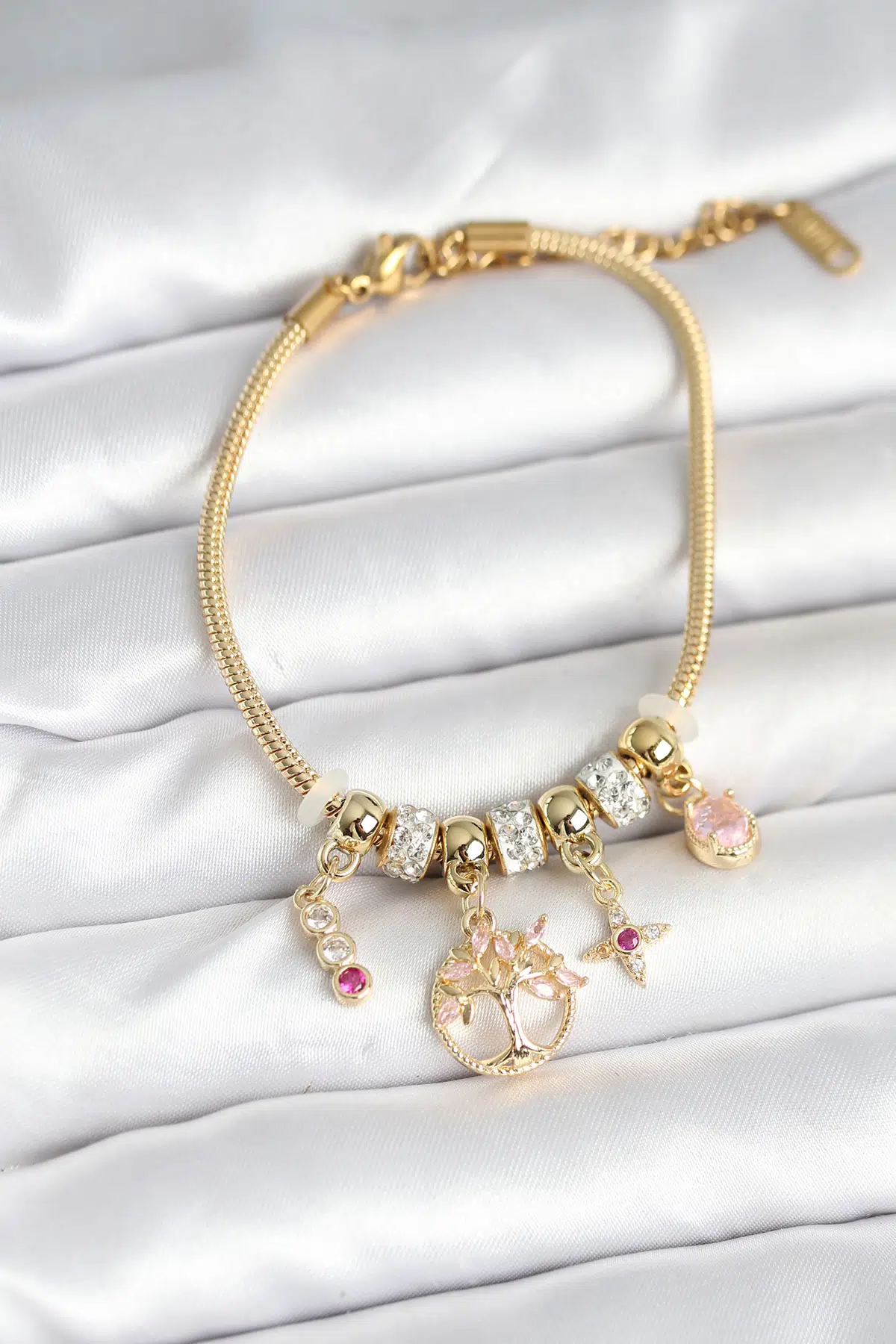 Etiketler | Pirinç Gold Renk Yaşam Ağacı Charmlı Kadın Bileklik - EBJ251004W38058 |