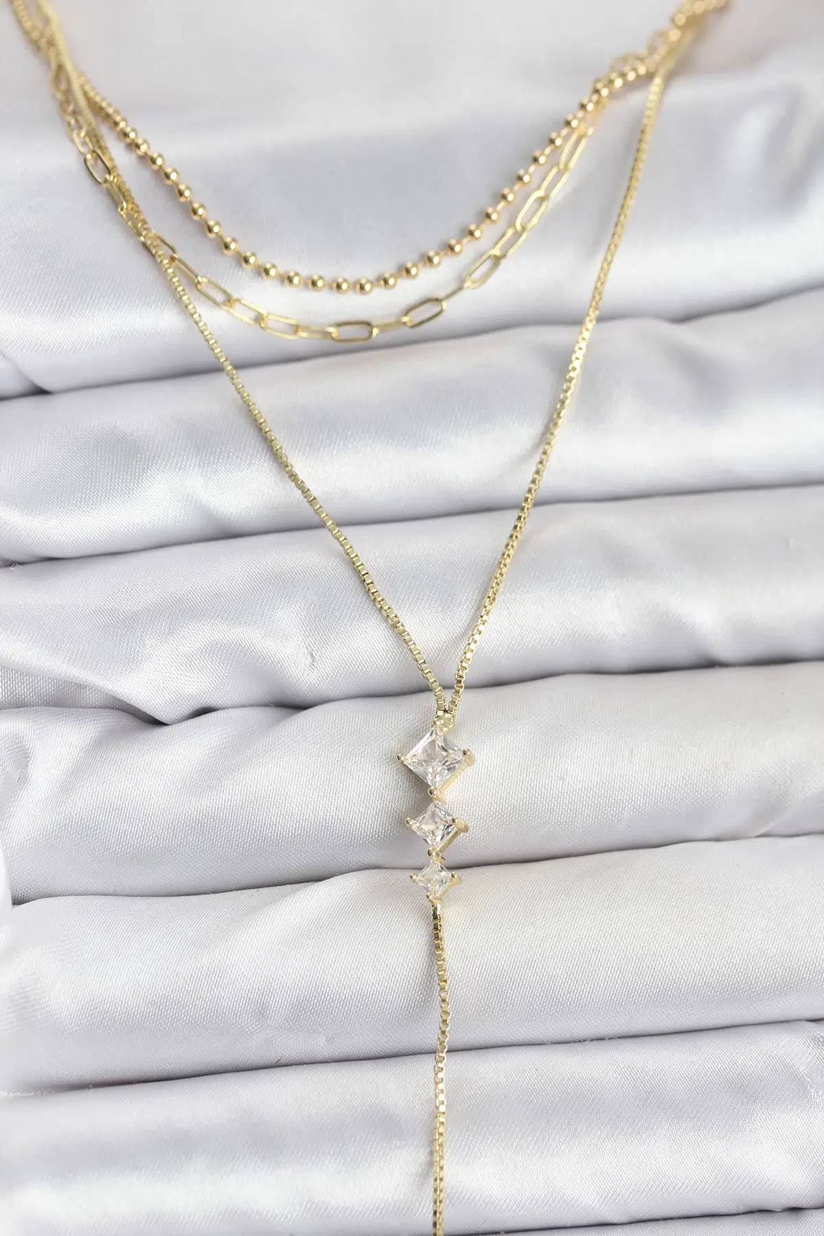 | Etiketler | Pirinç Gold Renk Zirkon Taş Detaylı 3'lü Kombin Y Kadın Kolye - EBJ251115W38424 |