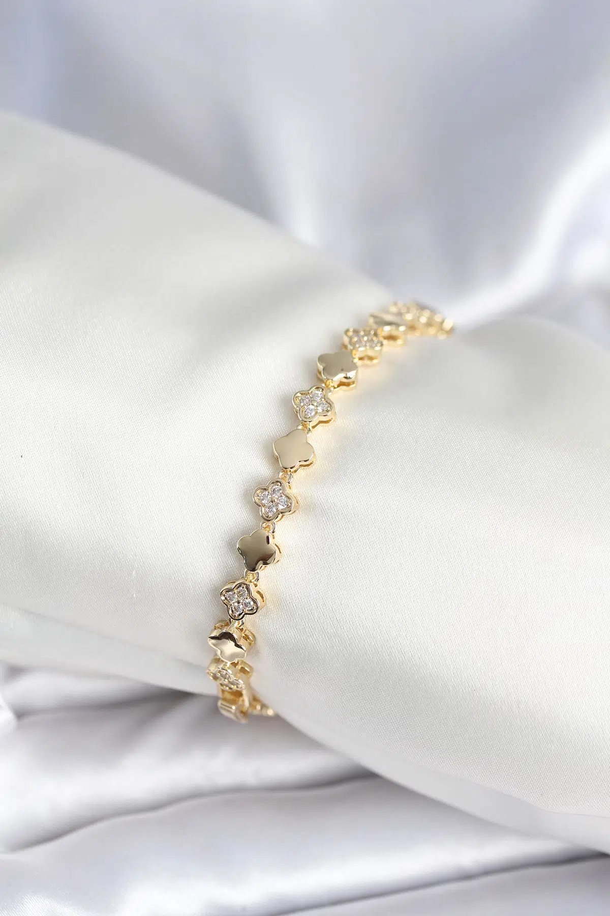 | Etiketler | Pirinç Gold Renk Zirkon Taşlı Yonca Model Kadın Bileklik - EBJ250927W38015 |