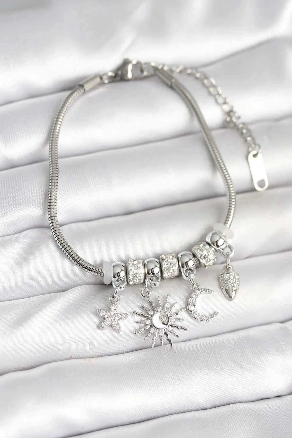 Etiketler | Pirinç Gümüş Renk Ay ve Güneş Charmlı Kadın Bileklik - EBJ251004W38067 |