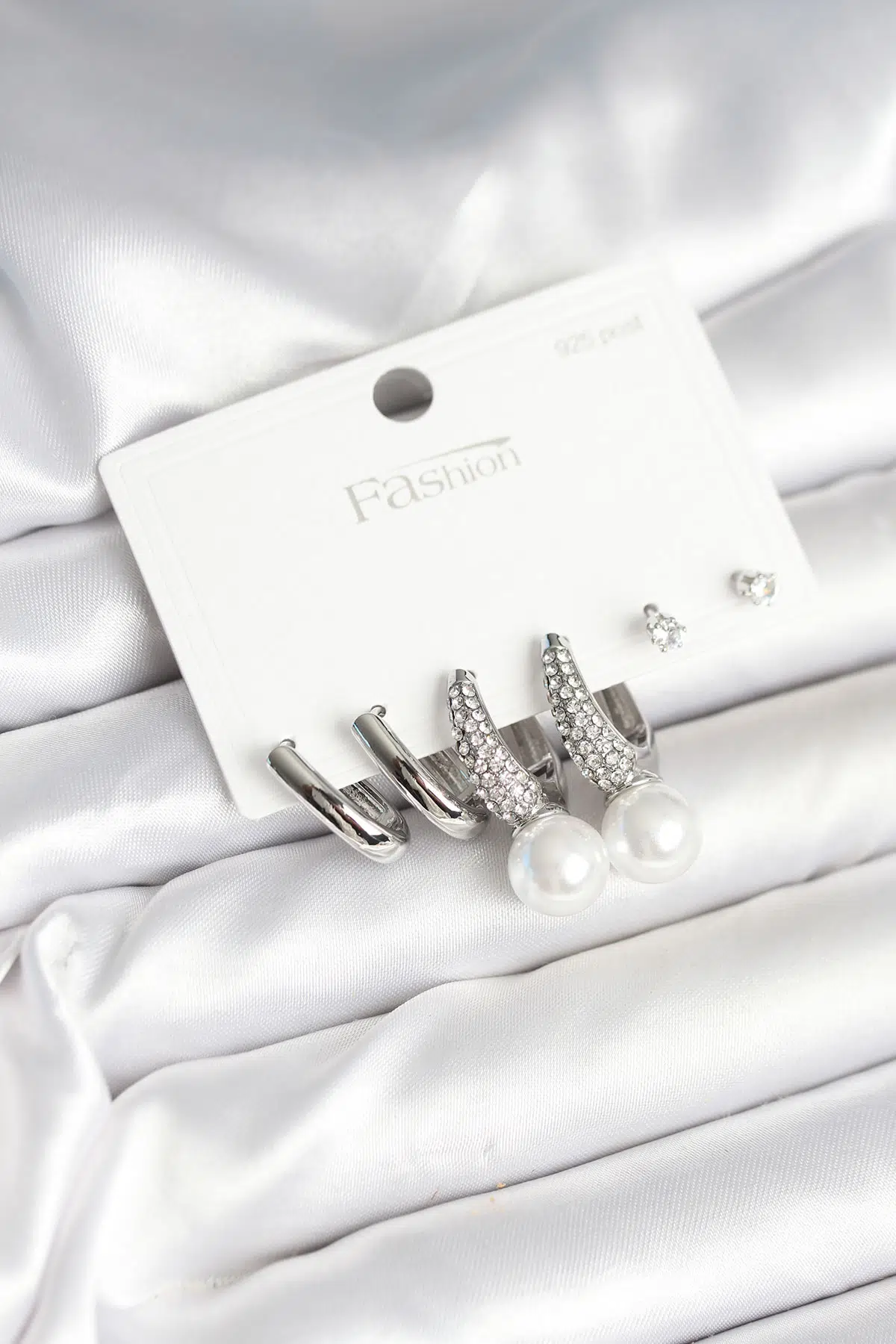 Etiketler | Pirinç Gümüş Renk İncili 925 Ayar Gümüş Çivi Kadın Küpe Seti - EBJ251010W38077 |