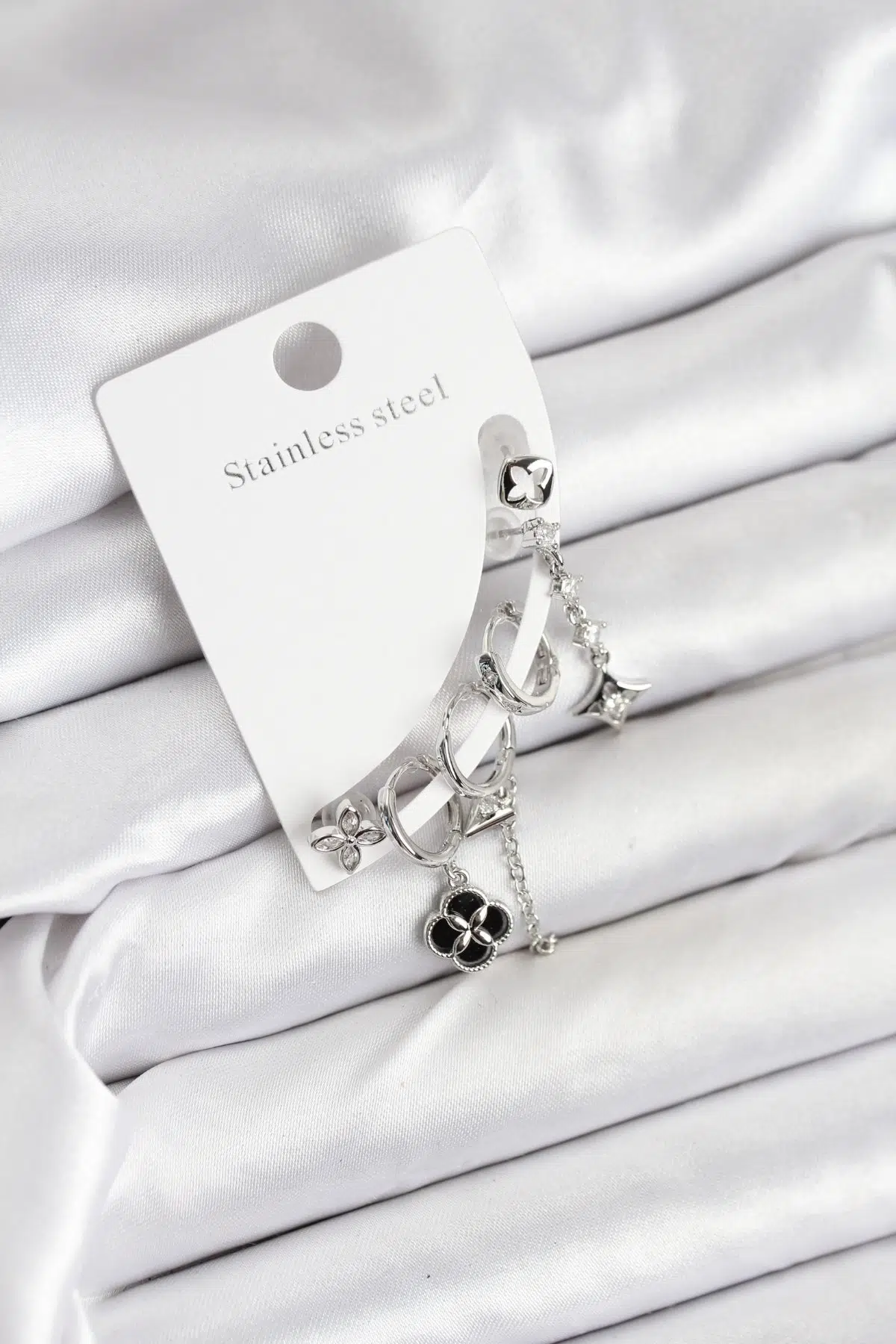 Etiketler | Pirinç Gümüş Renk Kadın Set Küpe - EBJ250920W37798 |