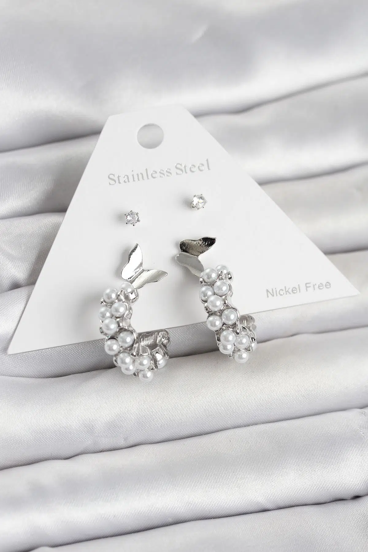 | Etiketler | Pirinç Gümüş Renk Kelebek Detaylı Kadın Küpe Seti - EBJ260404W41663 |