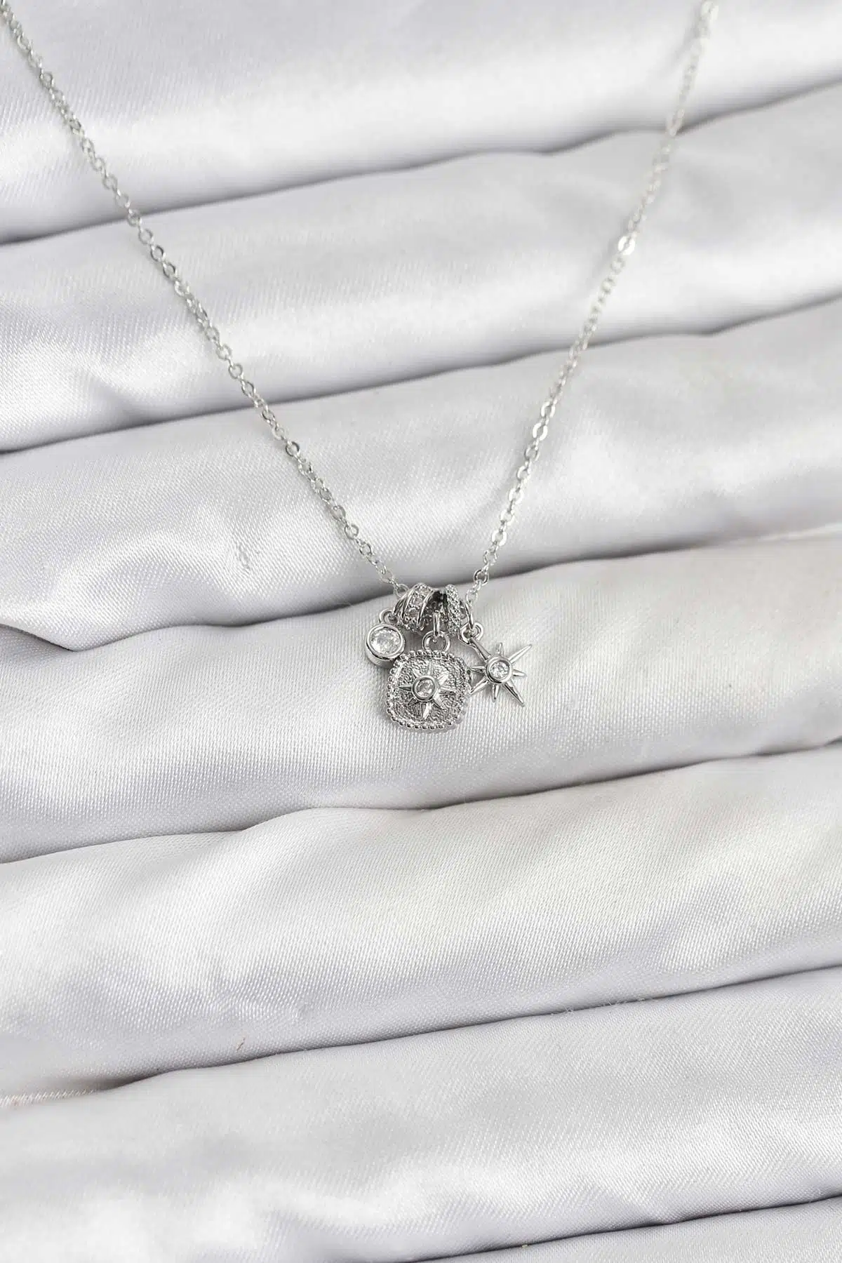 | Etiketler | Pirinç Gümüş Renk Minimal Charmlı Kadın Kolye - EBJ251219W38832 |