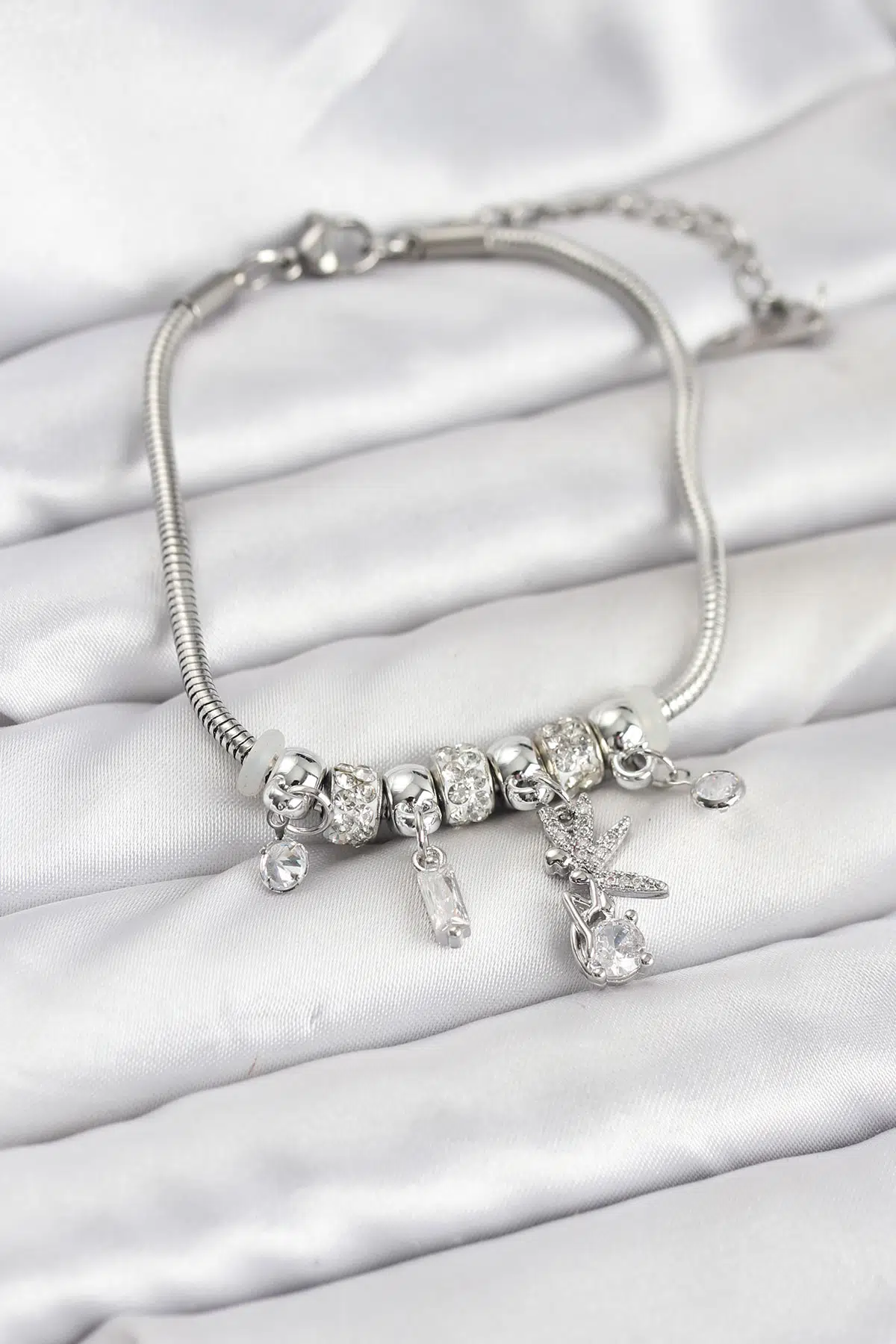 | Etiketler | Pirinç Gümüş Renk Tinkerbell Charmlı Kadın Bileklik - EBJ260109W39045 |