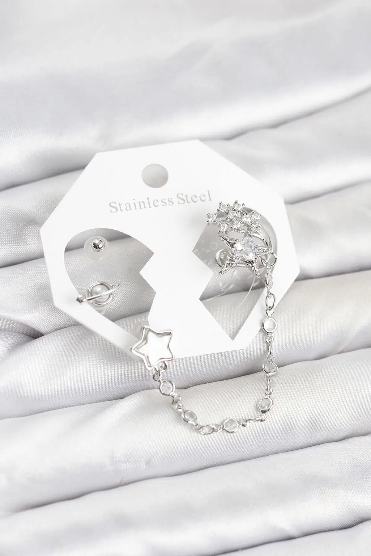 | Etiketler | Pirinç Gümüş Renk Yıldız Model Zincir Bağlantılı Ear Cuff Küpe Seti - EBJ260109W38974 |
