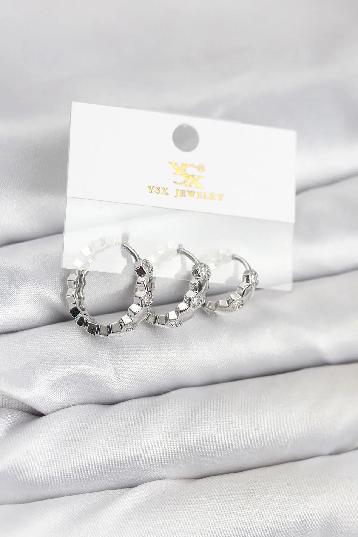 | Etiketler | Pirinç Gümüş Renk Zirkon Taşlı Petek Halka Model YSX Trio Küpe Seti - EBJ260109W39001 |