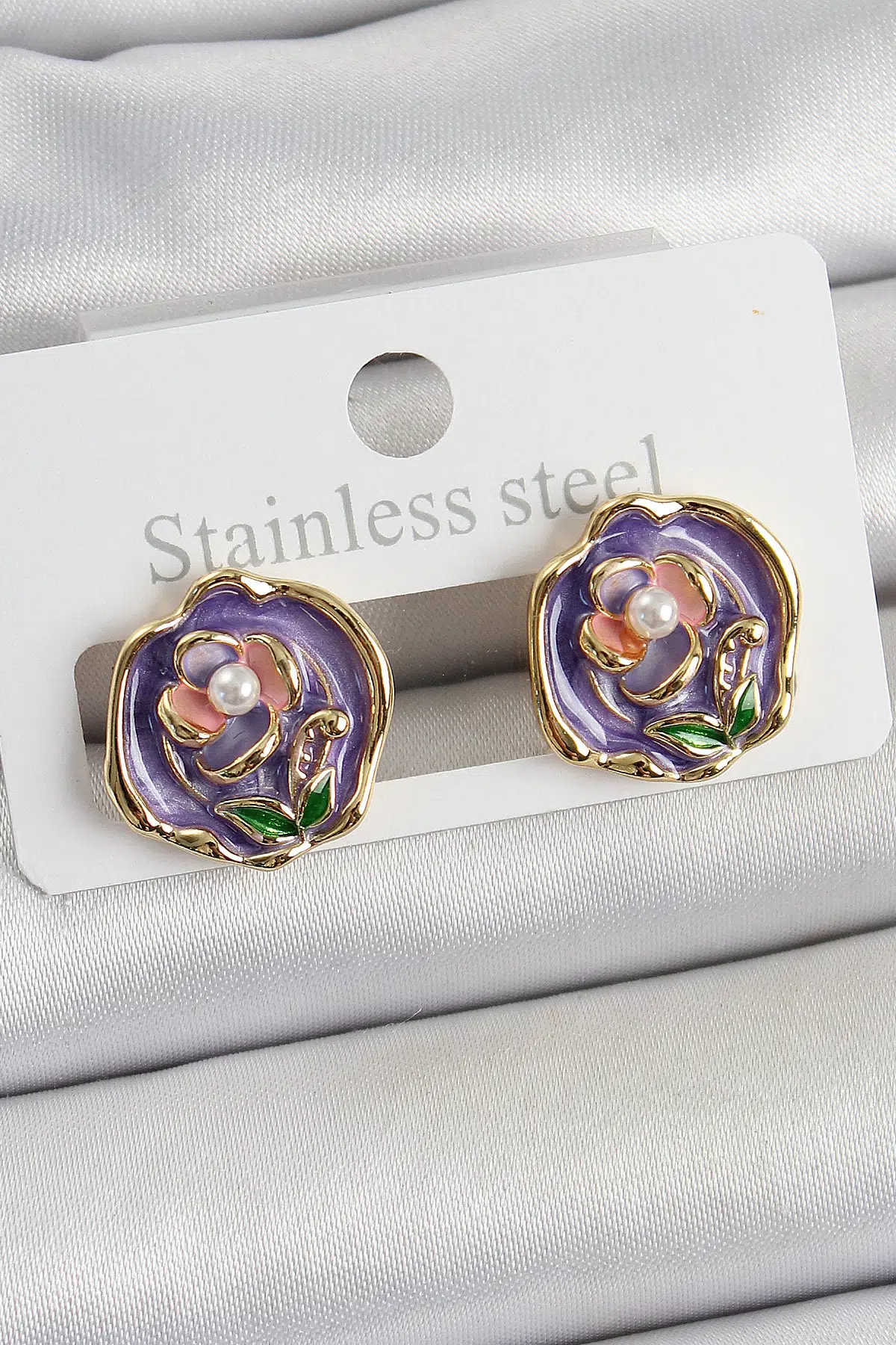 | Etiketler | Pirinç Mor Mineli Çiçek Figürlü Sanatsal Portre Model Gold Renk Kadın Küpe - EBJ260404W40354 |