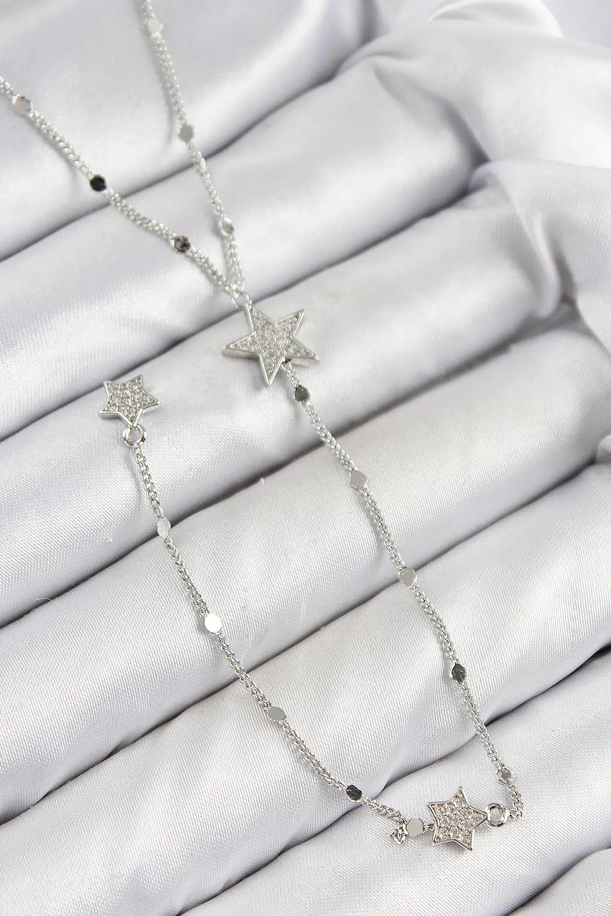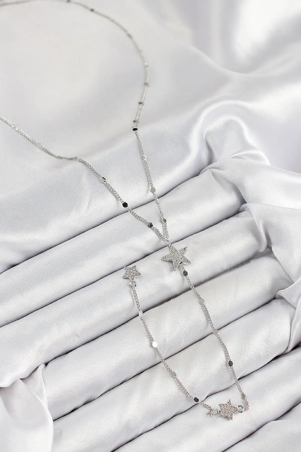 Etiketler | Pirinç Zirkon Taşlı Yıldız Model Gümüş Renk Y Kolye - XD-BKO10455-ST |