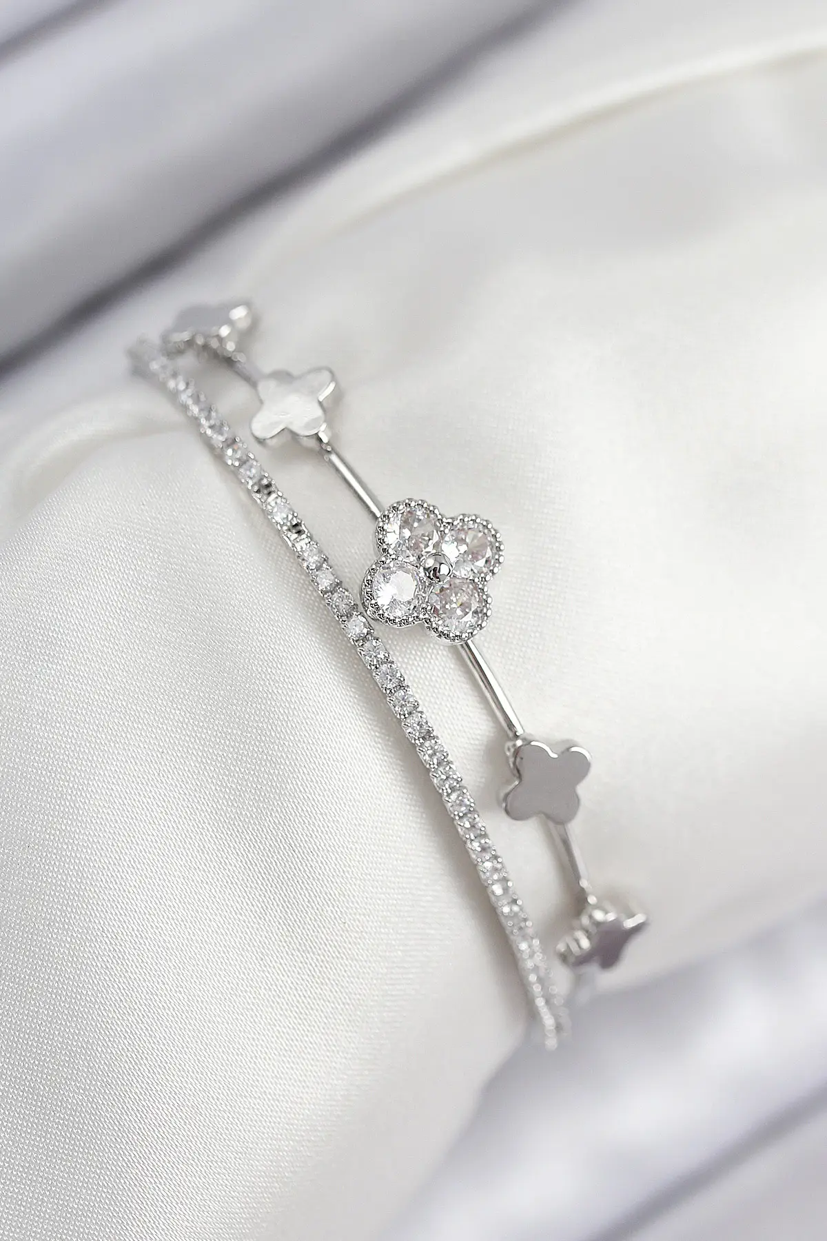 | Etiketler | Pirinç Zirkon Taşlı Yonca Model Gümüş Renk Kadın Bileklik - EBJ250902W37746 |