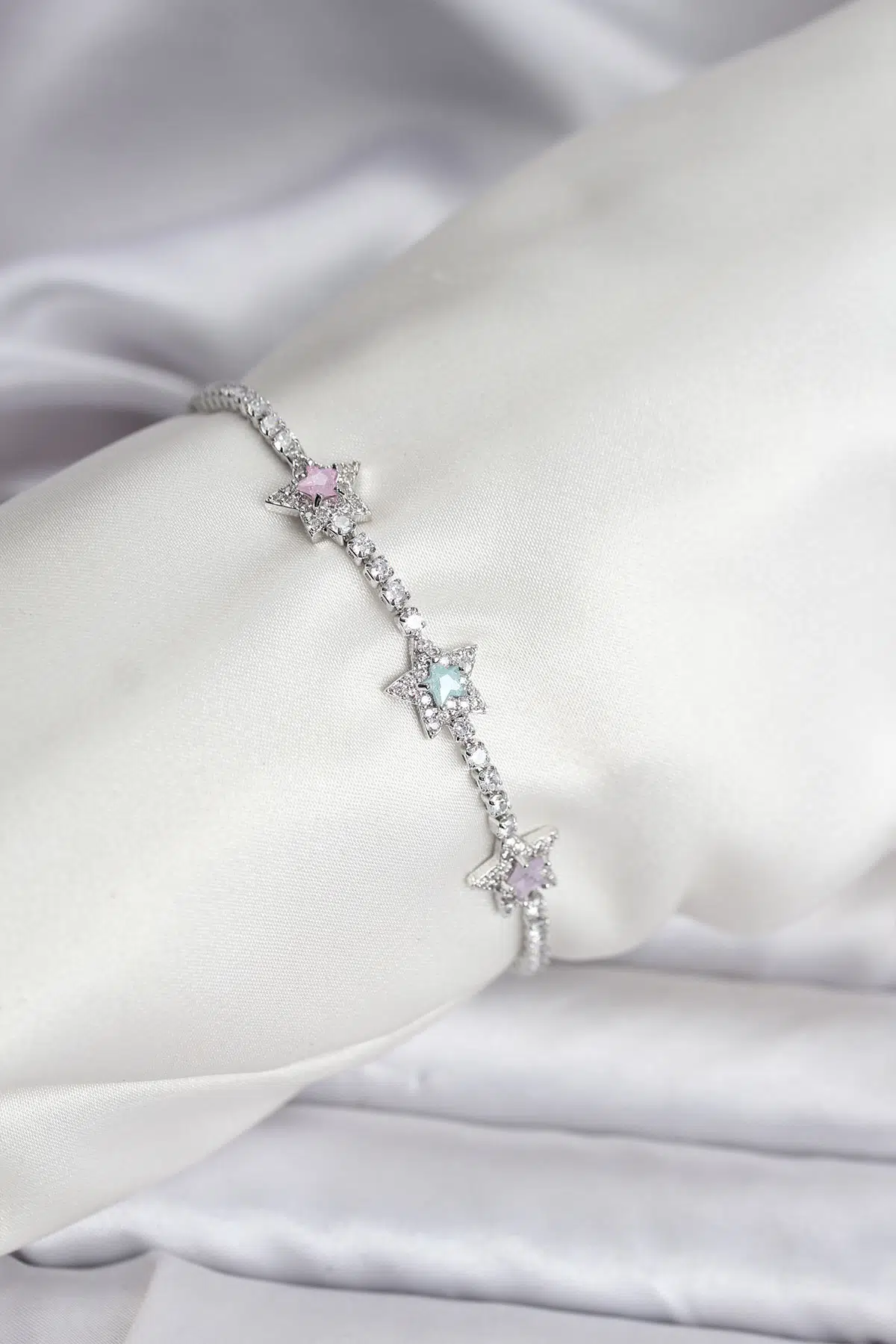 | Etiketler | Renkli Yıldız Model Zirkon Taşlı Gümüş Renk Pirinç Su Yolu Kadın Bileklik - EBJ251201W38607 |