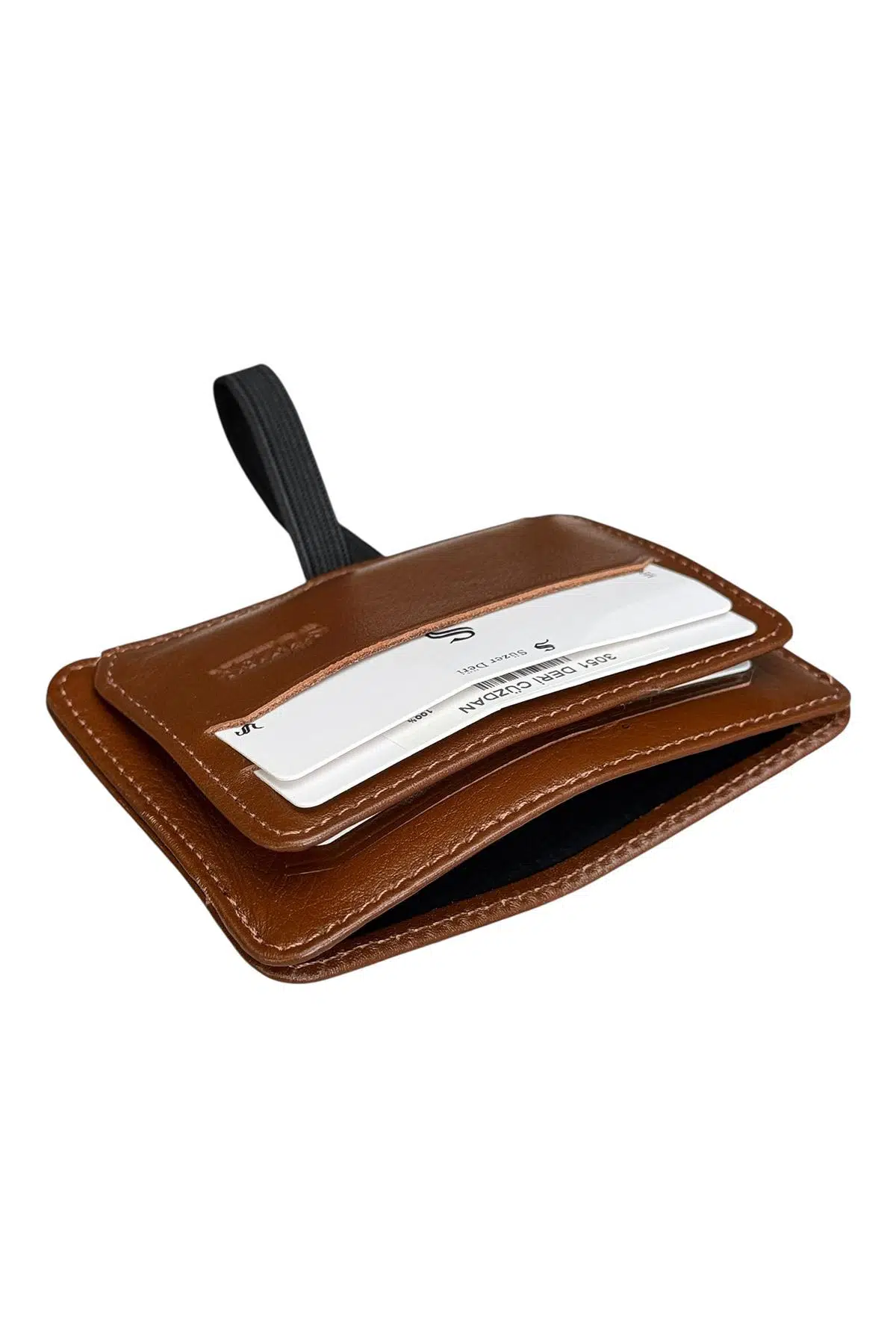 Etiketler | Taba Hakiki Deri Lastikli İkiye Katlanır Düz Model Mini Kredi Kartlık - 3051-Taba |