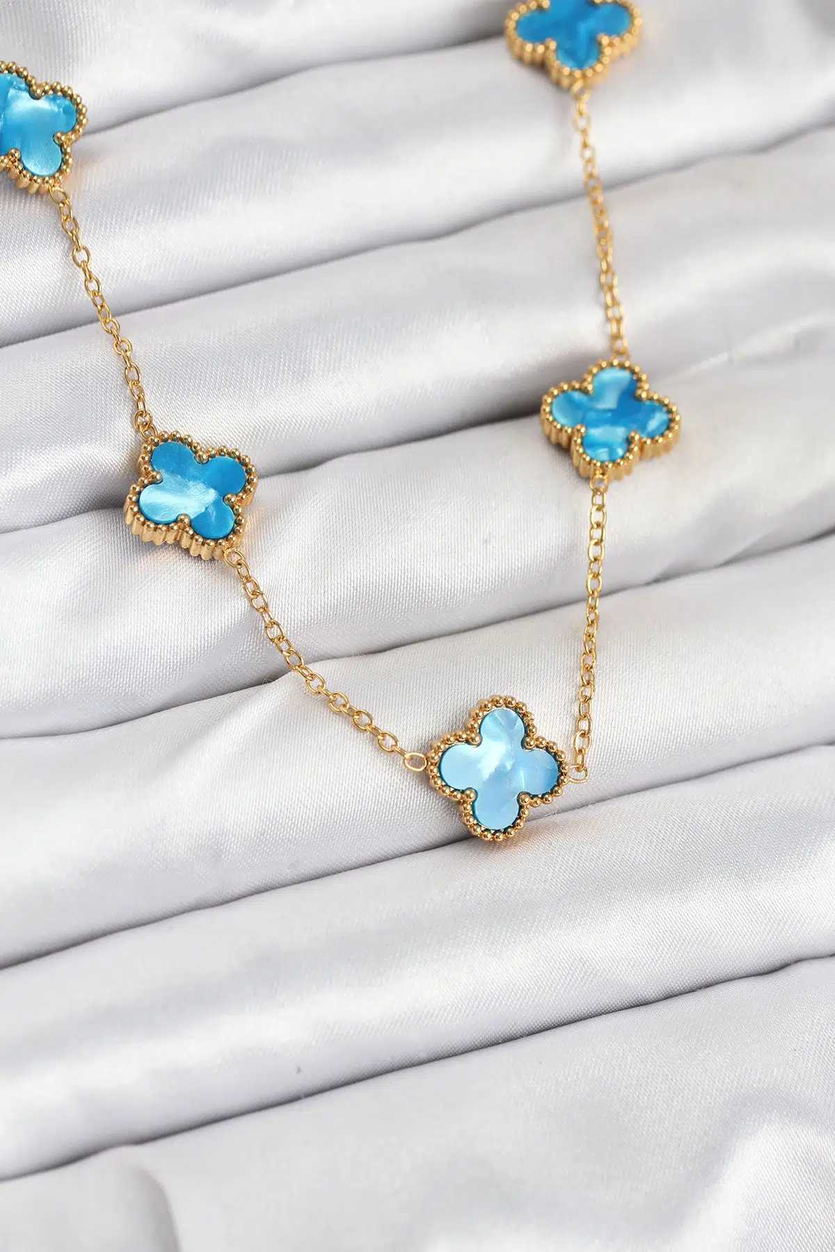Etiketler | Zincir Gold Buz Mavisi Renk Yonca Kolye - EBJ250920W37831 |