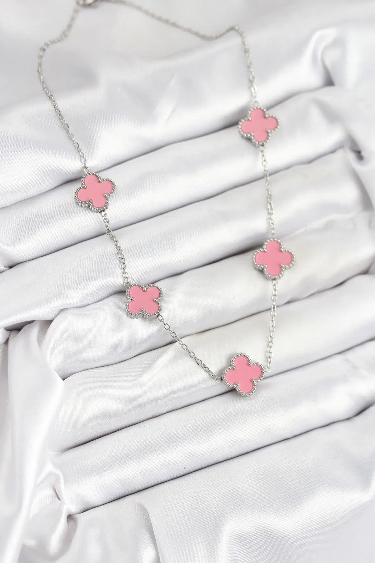 Etiketler | Zincir Gümüş Pembe Renk Yonca Kadın Kolye - EBJ250920W37849 |