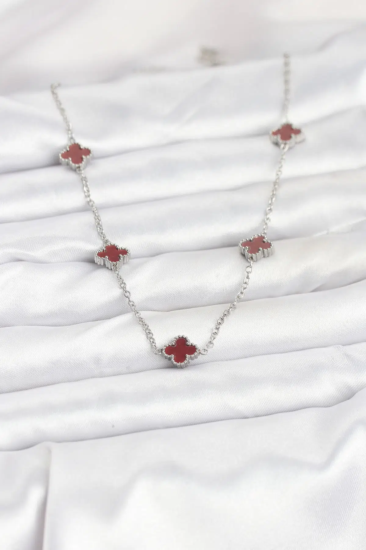 Etiketler | Zincir Gümüş Renk Bordo Baby Boy Yonca Kadın Kolye - EBJ250920W37842 |