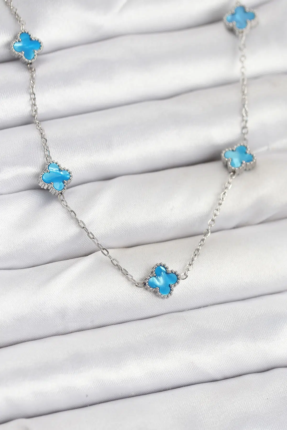 Etiketler | Zincir Gümüş Renk Buz Mavisi Baby Boy Yonca Kadın Kolye - EBJ250920W37841 |
