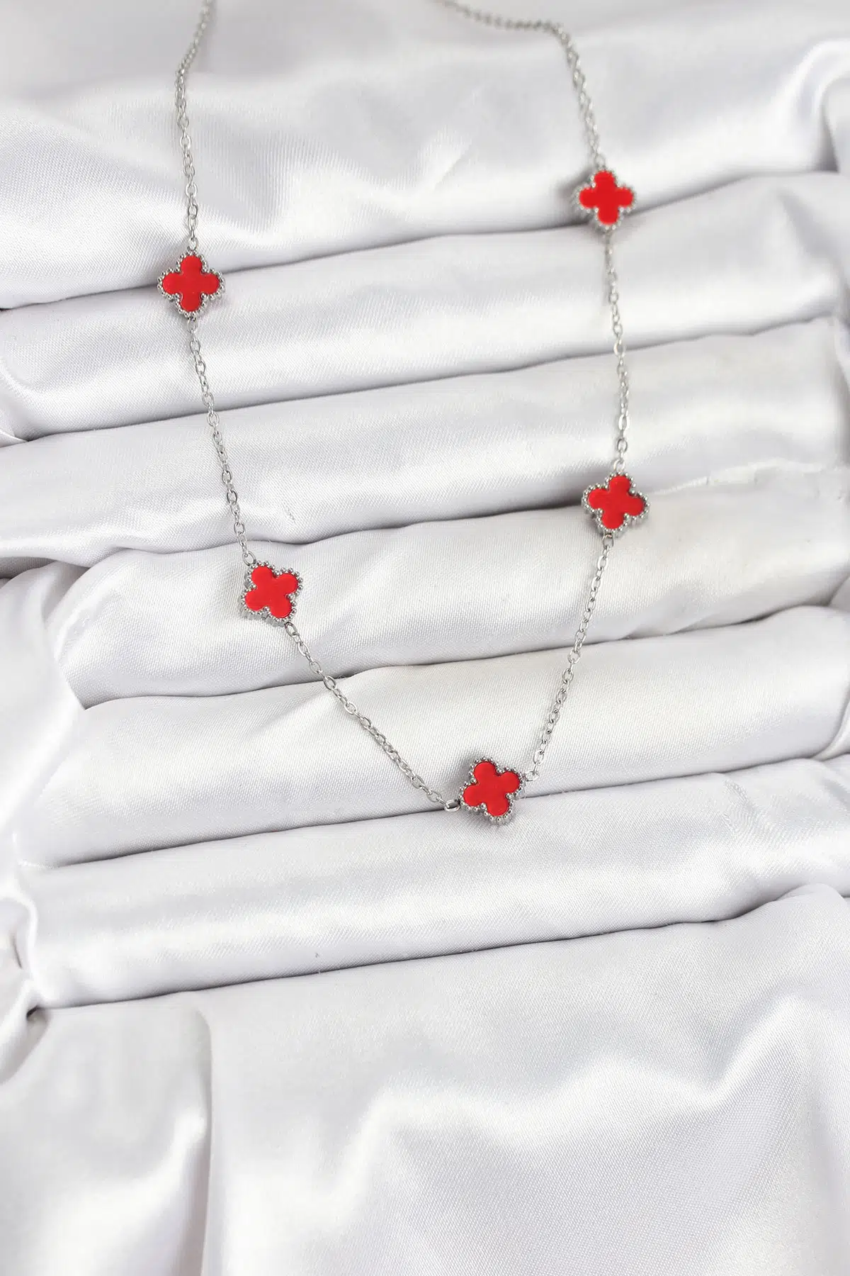 Etiketler | Zincir Gümüş Renk Kırmızı Baby Boy Yonca Kadın Kolye - EBJ250920W37846 |