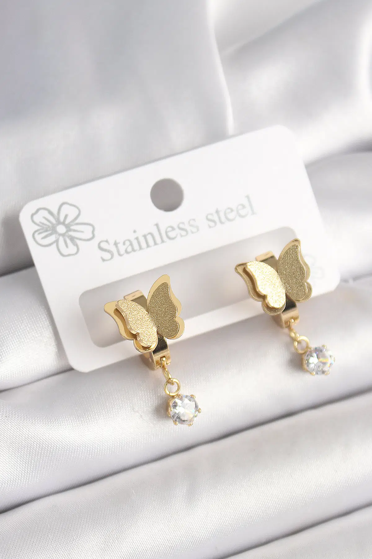 Etiketler | Zirkon Taş Detaylı Simli Kelebek Model Gold Renk Sallantı Kadın Küpe - XD-BKP10420-ST |