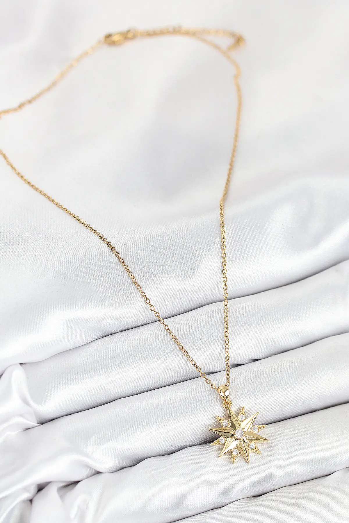 Etiketler | Zirkon Taşlı Kutup Yıldızı Model Gold Renk Kadın Kolye - EBJ250902W37701 |