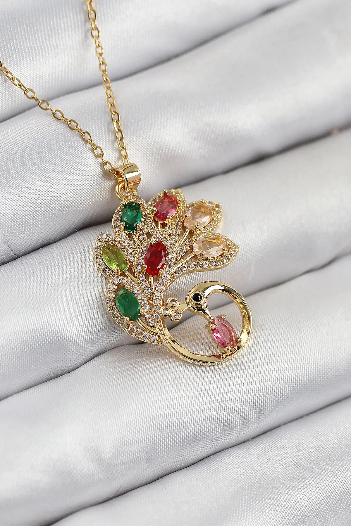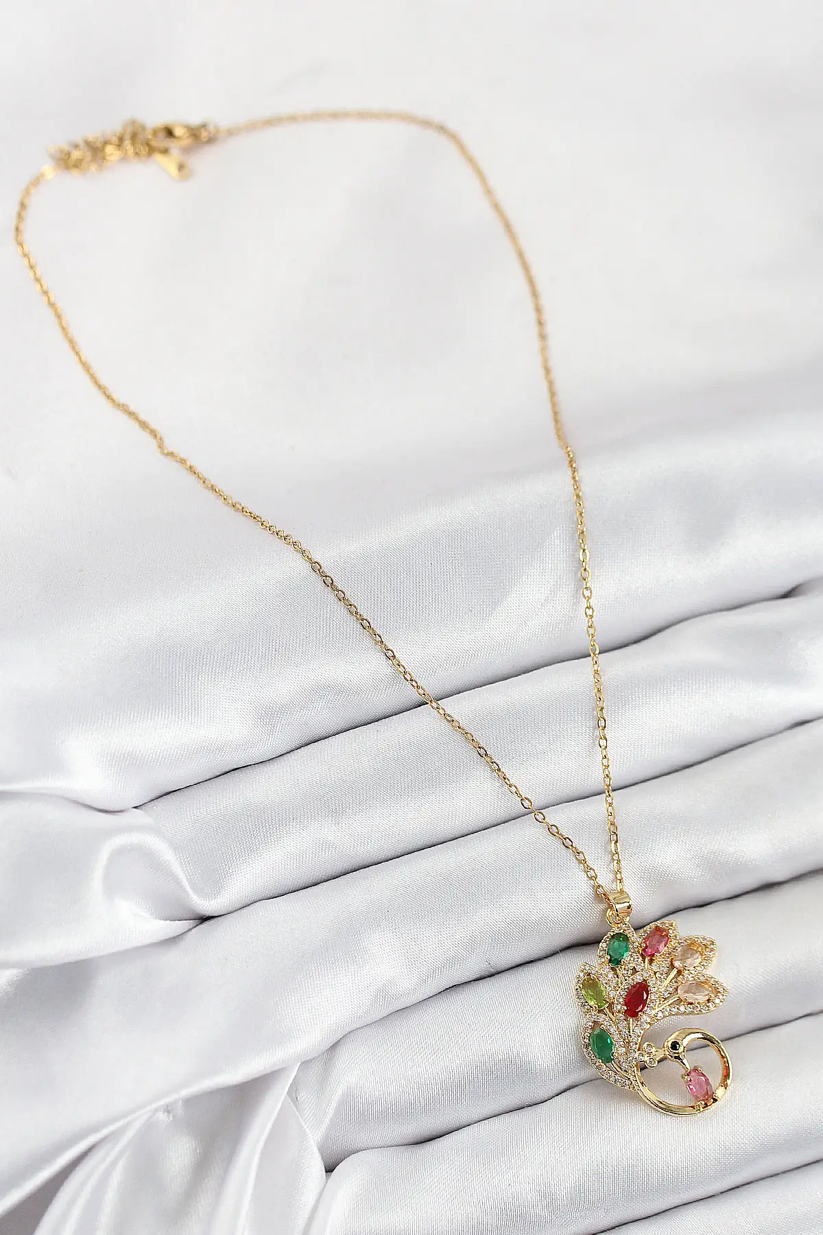 Etiketler | Zirkon Taşlı Tavus Kuşu Model Gold Renk Kadın Kolye - EBJ250902W37636 |